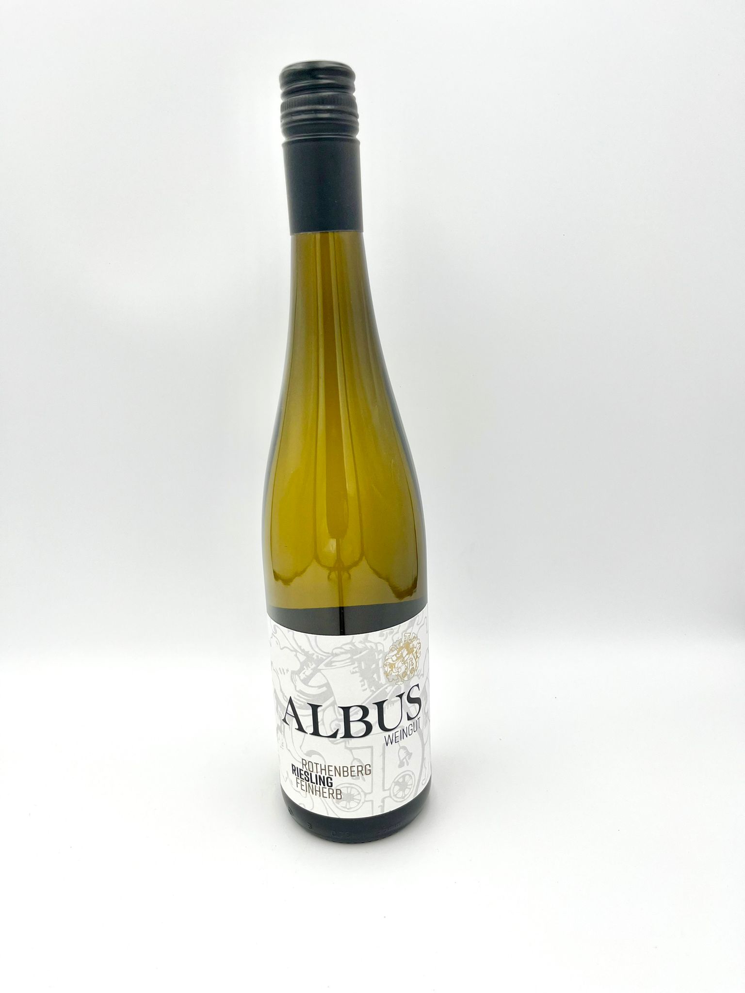 Der Riesling feinherb ist ein ausgesprochen fruchtiger Weißwein vom Rothenberg, mit köstlichen Zitrusnoten, Aromen von Pfirsich und Apfel.